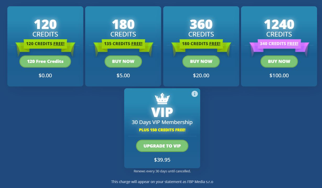 In the case of Flirt4free, you will pay in advance for these tokens or credits. There are 5 package options so the initial cost to try the site is very low.