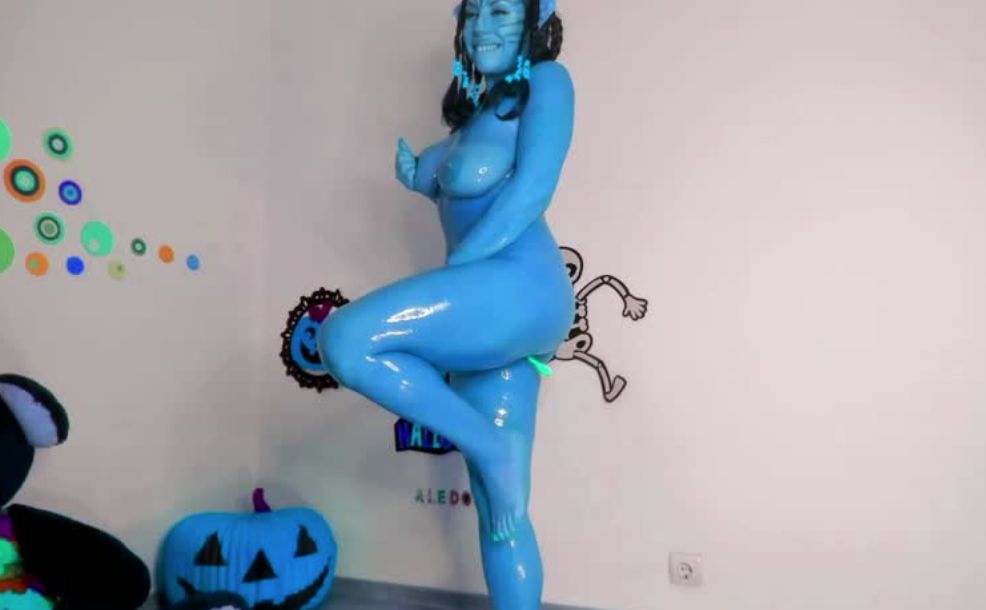 Just to share one of the top Chaturbate Halloween cams I have to me mention alledoll as well. Just looks like how sexy her Avatar costume was. This is a special type of glossy glow in the dark body paint and that just made her show and Halloween costume so hot!